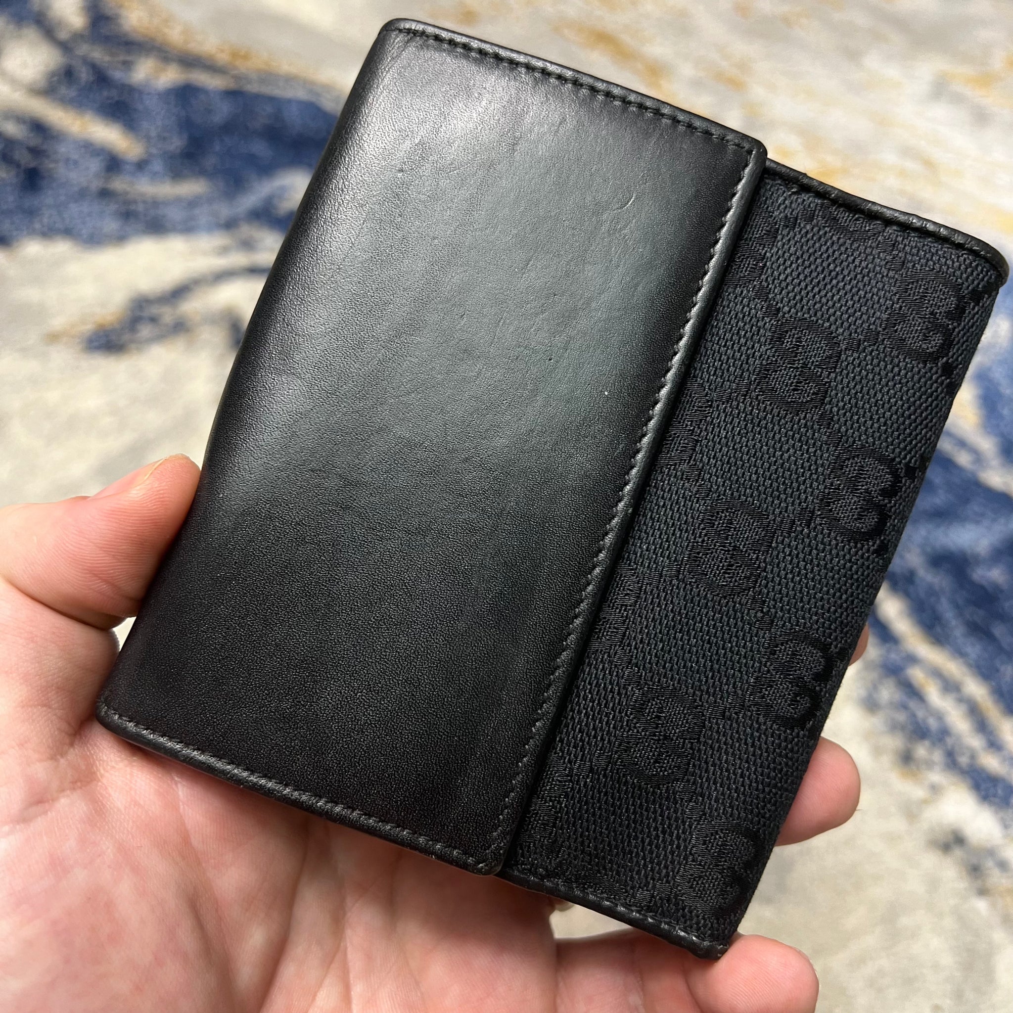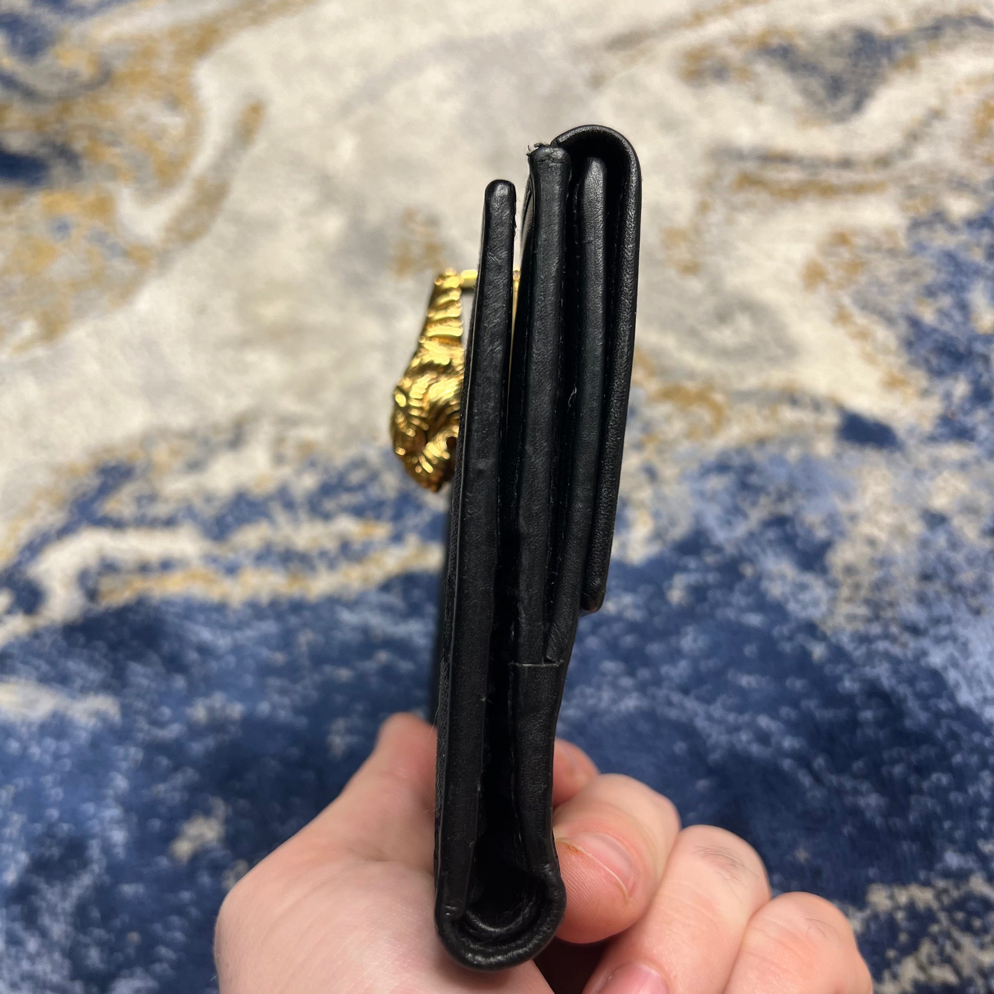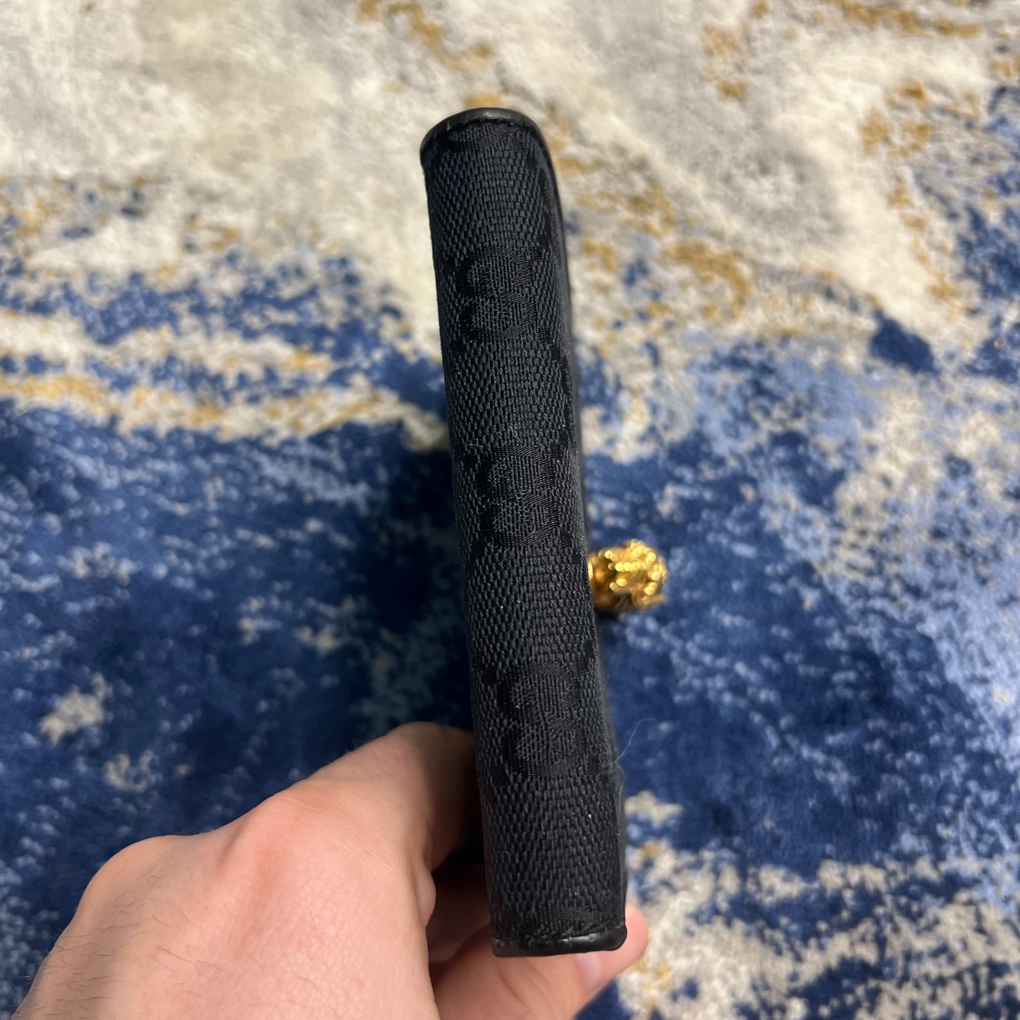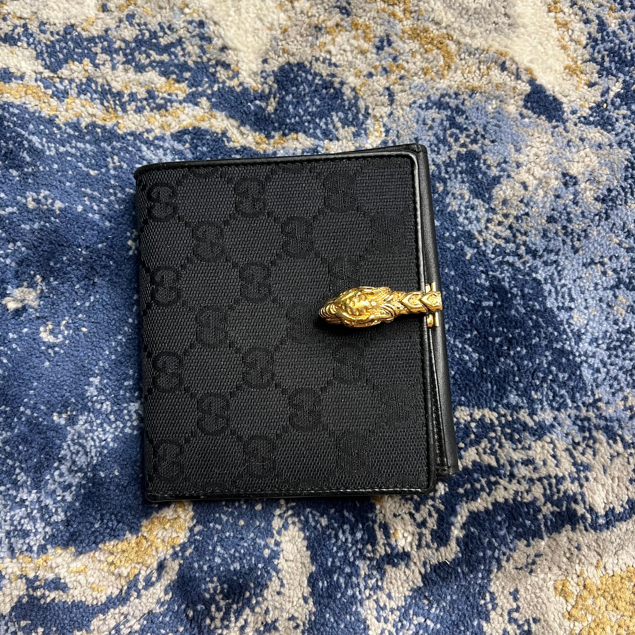 GUCCI GG TIGER HEAD CANVAS LEATHER BLACK COMPACT WALLET