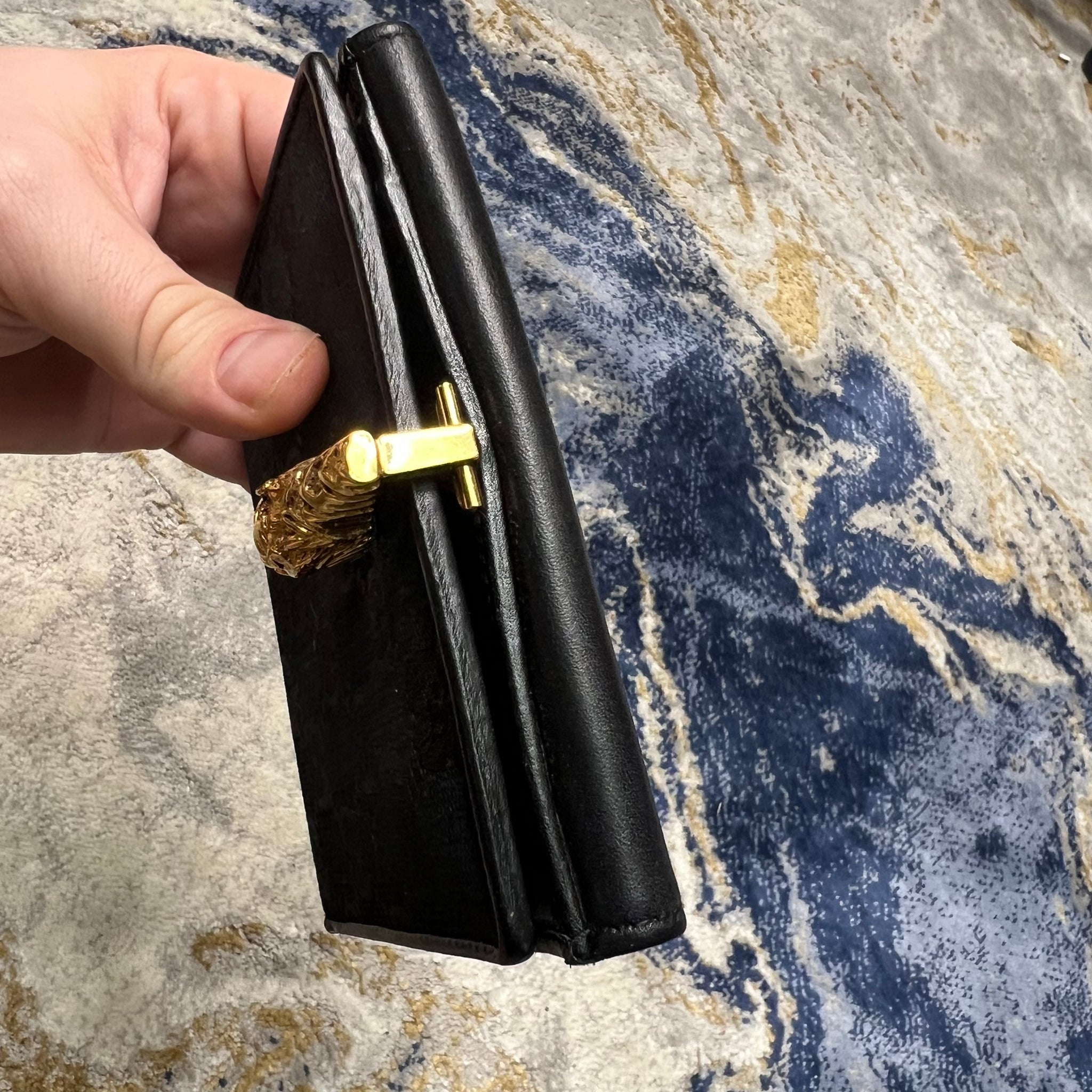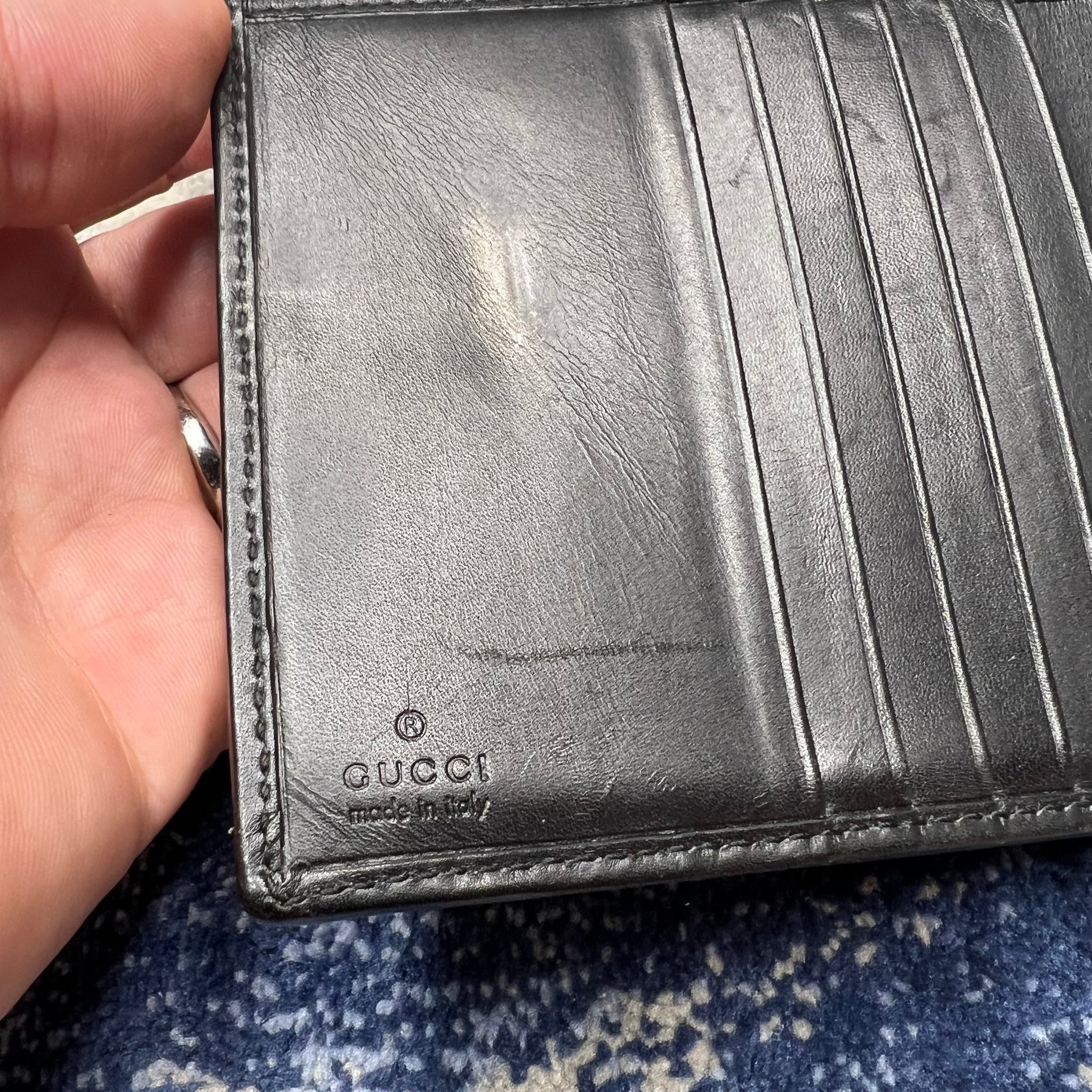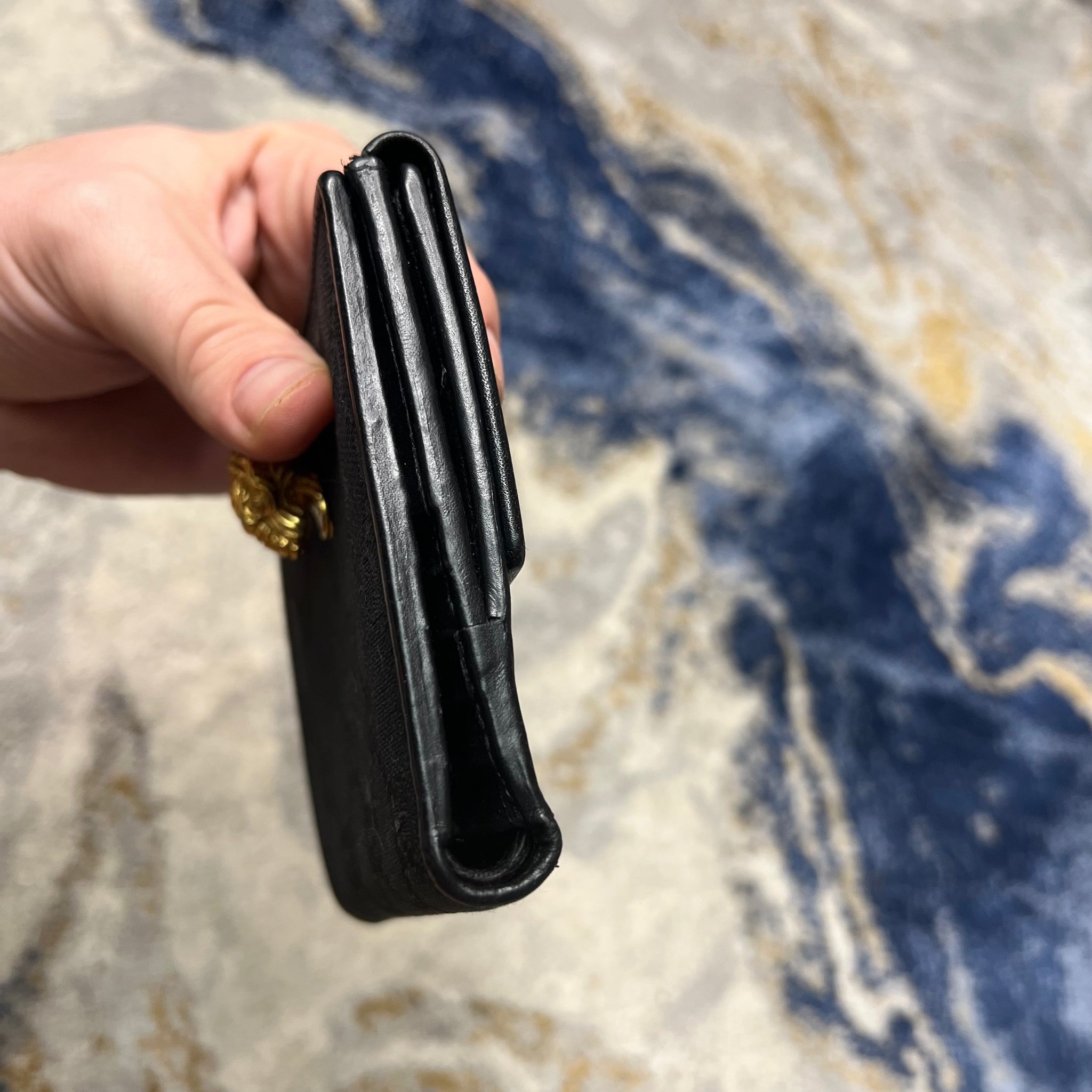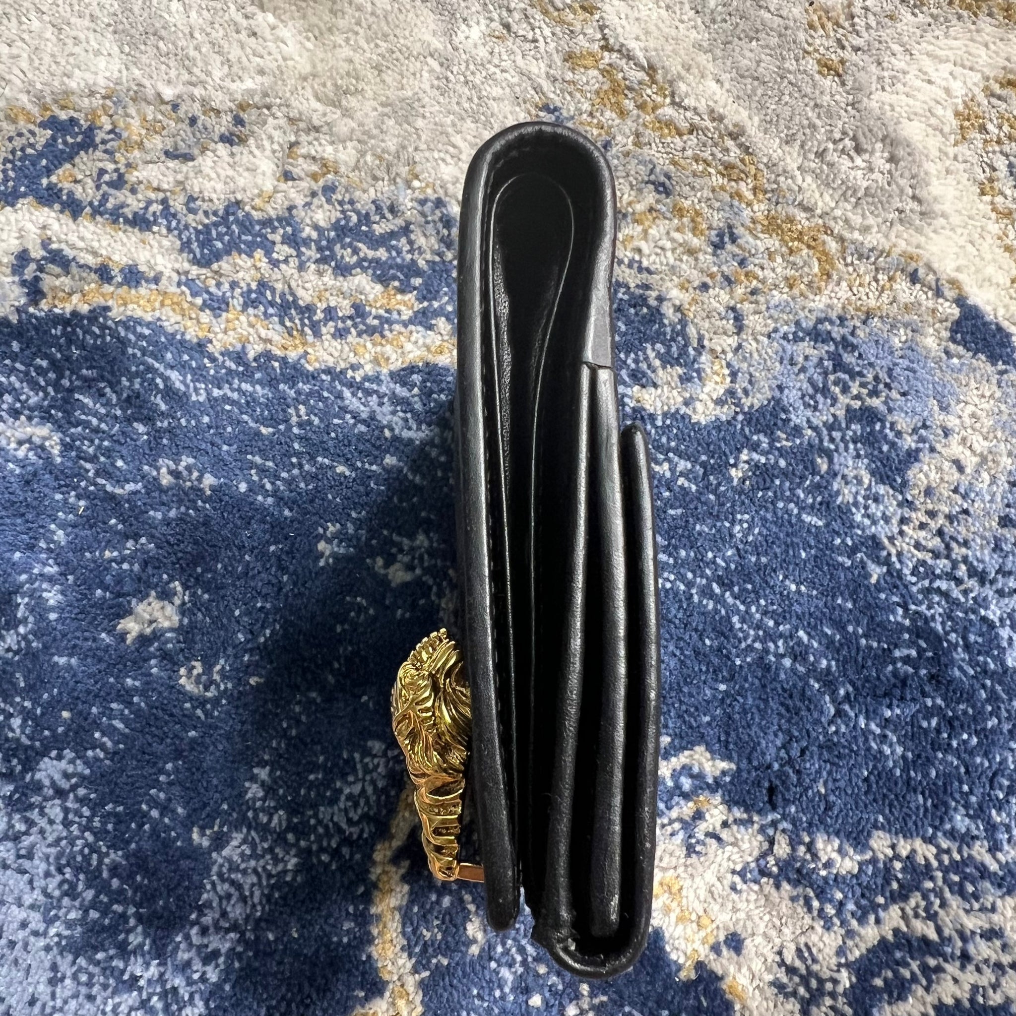 GUCCI GG TIGER HEAD CANVAS LEATHER BLACK COMPACT WALLET